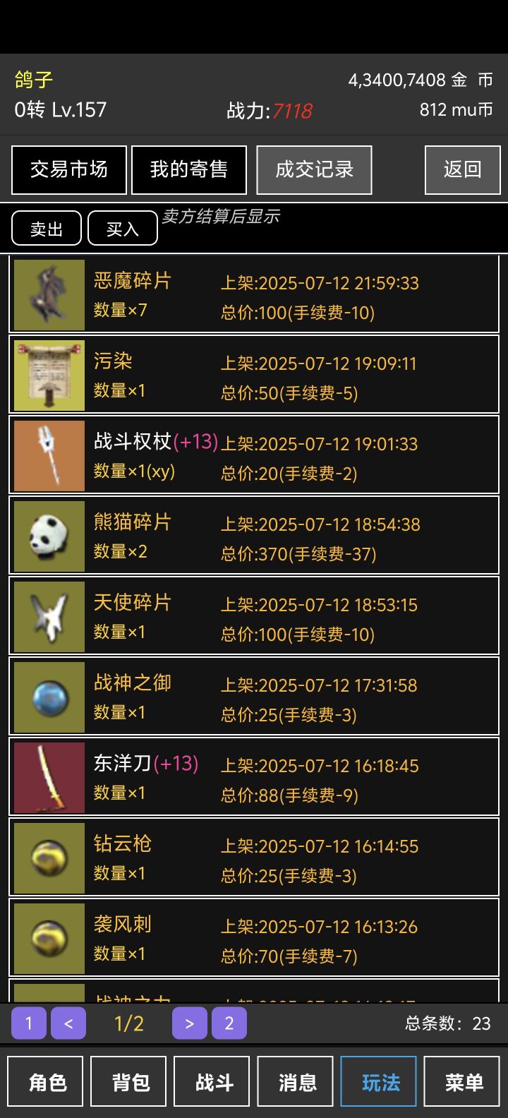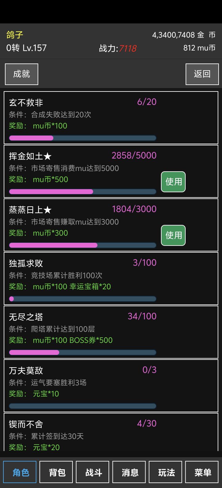 鉴于一个个萌新都不知道开局干嘛以及各种功能找不到大概写一下本游戏主打挂机放置每天签到收收菜卖卖东西休闲也很休闲想忙也有的忙开通交易私聊群主手写发送账号即可免费一人限一次发现小号转资源的一律封号小号过多会影响大家的游戏体验请各位玩家见谅游戏资源不能转人民币请不要过分期待1.首先讲一下游戏货币分为金币mu币钻石元宝金币主要是合成和强化装备使用mu币三一级可以进入的大陆水池里面使用的货币本