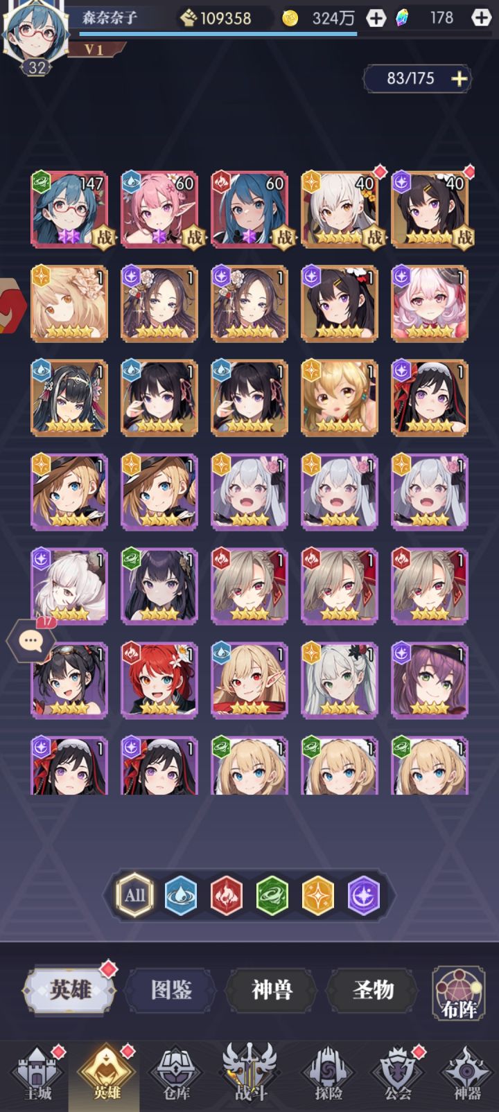 如果是零氪金或者微氪金,前期资源很少,可以先把资源集中起来养一个,剩下的是一个随便升点等级就行了,都是炮灰,能扛过一个回合就可以了阵容推荐 每个属性养一个。