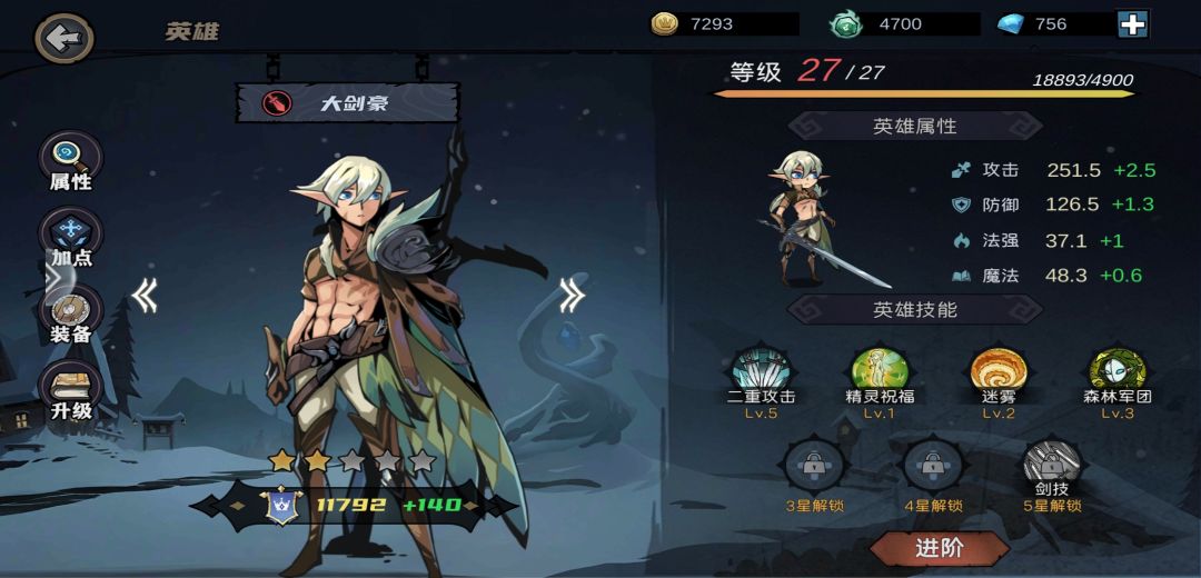 入坑第三天已经基本摸清游戏玩法了,主线通到11章,无尽和幻境都通关了最高难度,玩的过程中也走了一些弯路,把总结出来的经验和大家分享一下~ 1.英雄搭配 前期(副英雄解锁前) :大剑豪 后期:主英雄:影刺客 副英雄:大剑豪;狂野猫女(解锁二副后) 为什么要把影刺客作为主英雄呢?因为对第一技能来说主副英雄没有区别,但是在英雄25级进阶以后会解锁第二个专属技能,影刺客的冰雪军团可以提高冰雪军队的属性(