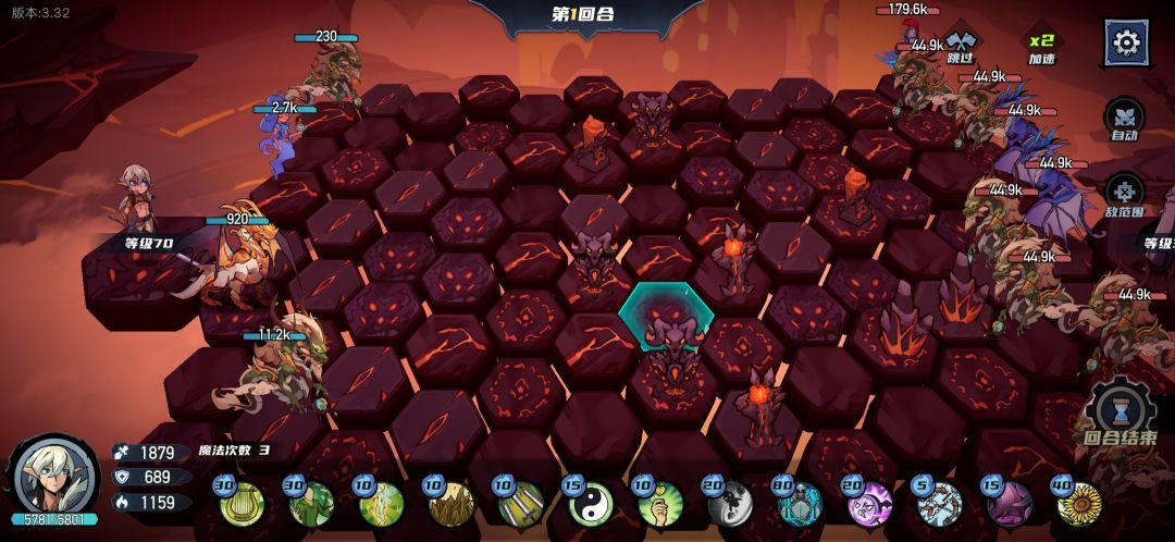 过完新手教程后,先去把兑换码领了,钻石不要直接花,抽卡跟着任务走,卡任务再去把钻石置换成对应资源去抽卡。 首发英雄火法,技能拉满,装备只看法强,副英雄和小兵无所谓。副技能多重施法,没有就装和多重施法相关羁绊的技能,在关卡内商店刷到多重施法升满,商店内优先选取增伤和加法强的技能,再拿一个群体伤害技能,前五章随便过。 打完第五章后把刀女和灭国买了,主英雄灭国,副英雄火法刀女,两个副技能多重施法和远