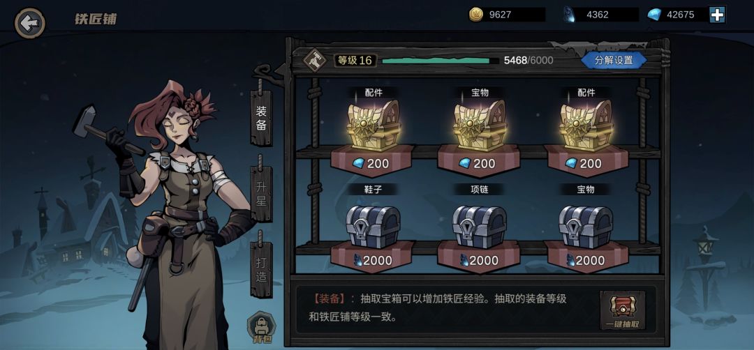 玩了五天,游戏可玩性还不错,当个单机也还行。 钻石 不要乱花……每日体力值必买,性价比很高 当推图推不动的时候买点黑晶石去打铁,装备等级高了自然而然就过去了,铁匠铺的装等好像是十级为一等,21级的装备属性比二十级的高了一倍;铁匠铺满级了再去抽别的不香吗?[表情_微笑][表情_微笑][表情_微笑] 金币 抽佣兵,凑齐远程三兄弟——抽技能,把三个主英雄的天赋升满——抽佣兵,提高队伍属性,形成战力碾压 英