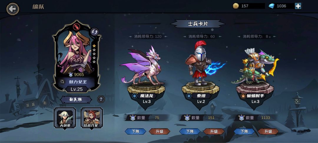 自己研究的阵容,玩蜥蜴用心灵的才知道有多香(一开始不知道召唤还分低中高,我就一直在抽低级的) 回归正题,蜥蜴第一个技能是给对面挂层毒,他作为射手普攻打不出什么伤害,对面还剩一大半血直接毒死了就很香,缺点是有点脆,打黑魔法的时候得先召唤个炮灰打一下把反击抗一下。 我这个阵容打千人关一直是无伤,主要是靠慢慢磨,第一个心灵丢给骑士,他一定扛得住,蜥蜴和泰坦都打射手就行,然后直接下一回合,第二个回合看情况