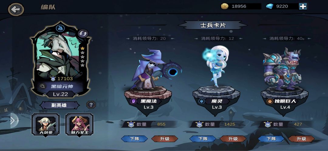 这游戏打不过就是装备不行,当你觉得刮痧的时候,就是装备不行,铁匠铺到21级之后打造一身攻击和统治力的装备,你就会发现你无敌了。 英雄:影刺客、大剑豪,另一个我选猫女,我是猫女主c,猫女大后期破甲不错,有时候刀女也可以。 兵种:独眼巨人必备 5级金龙每关多加10点钱,推图嗷嗷好用,不差钱。慢慢攒,金龙很好出其实,金币抽就可以。可以用灯神、黑魔法替代,我一般用黑魔法,范围攻击 另一个我一般用泰坦,其实