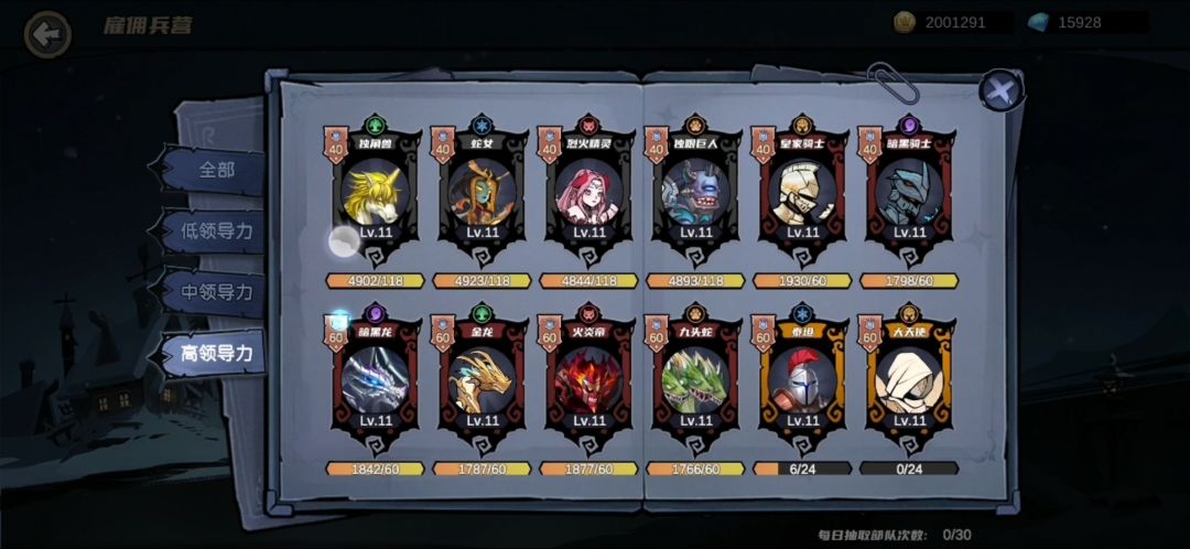 自动龙30组 大统领(战争艺术) 猫女(破甲) 兽王 大丢丢 枪兵 树精灵/矮人 欢欣鼓舞 风之祝福 圣魔法 群攻追击(满) 部队伤害450% 领导力:8w 55手动龙30组(给欢欣鼓舞稳定秒箱子) 兽王 剑豪 大统领 大丢丢 枪兵 树精灵/矮人 欢欣鼓舞(满) 风之祝福 圣魔法 群攻追击(满) 攻击>406 部队伤害350% 领导力:7w 45手动龙30极限组(需要sl刺客暴击) 兽王(4⭐
