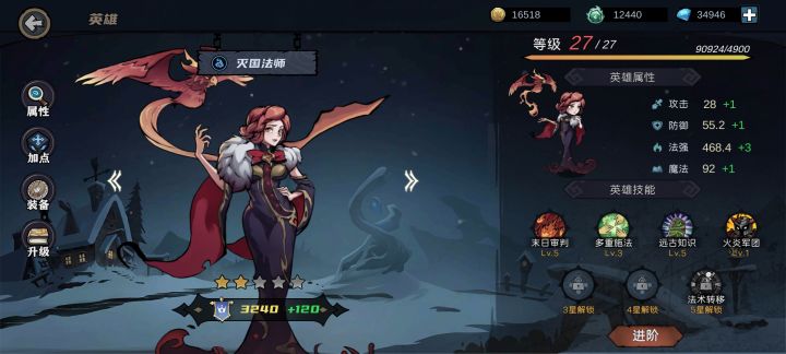过完新手教程后,先去把兑换码领了,钻石不要直接花,抽卡跟着任务走,卡任务再去把钻石置换成对应资源去抽卡。首发英雄火法,技能拉满,装备只看法强,副英雄和小兵无所谓。副技能多重施法,没有就装和多重施法相关羁绊的技能,在关卡内商店刷到多重施法升满,商店内优先选取增伤和加法强的技能,再拿一个群体伤害技能,前五章随便过。打完第五章后把刀女和灭国买了,主英雄灭国,副英雄火法刀女,两个副技能多重施法和远古知