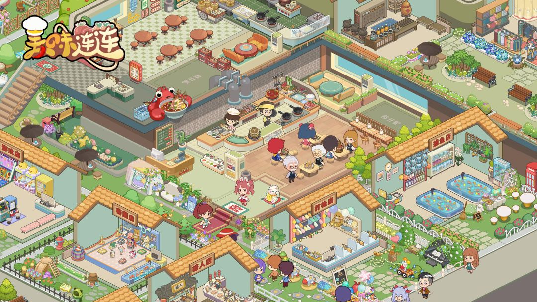 《美味连连》带你走进繁华的美食街,经营八大菜系餐厅,开设糖人店,变脸表演舞台等多家店铺以及打气球,捞金鱼各种有趣的游乐场所,只有你想不到,没有我们做不到的搞怪有趣商铺。招募大厨、服务员,共筑餐饮帝国。装修美食街,点缀装饰,让顾客心情愉悦。更有幽默故事待你解锁,助顾客解忧,开启美食之旅!