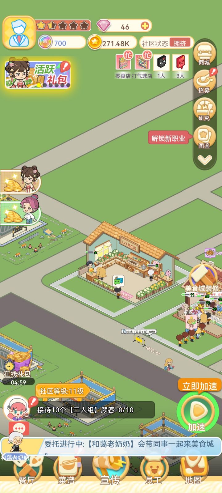 除了饭店和需要钻石解锁的店铺,大小店铺和可修建的位置都是17个,为什么会剩一个小店铺和修建大型店铺的位置,根本就建不了