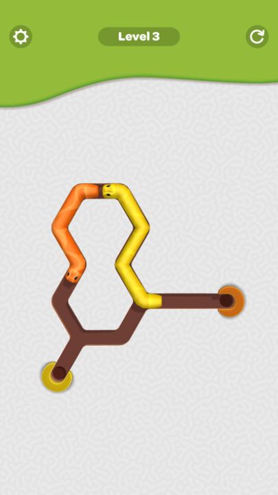 In Snake Line, you aim to put the snakes in the same-colored holes. Some snakes don't have a spot to get in, move them around to make space for other snakes.