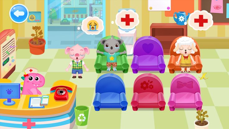 快来体验恐龙小镇的动物医院,帮助恐龙小镇的可爱动物居民们,小猪弟弟,绵羊妹妹,考拉哥哥,考拉弟弟,小熊妹妹,生病的动物们需要你的帮助~
