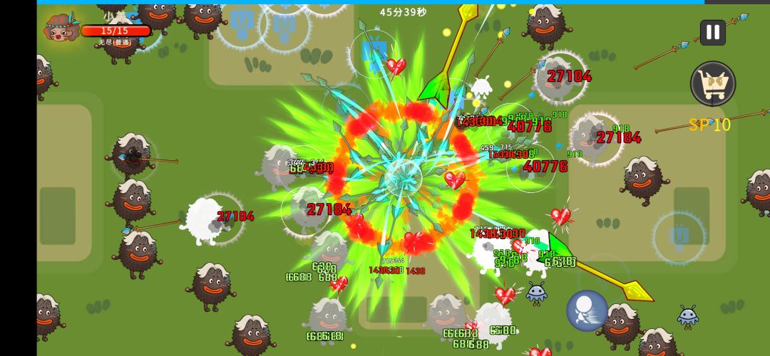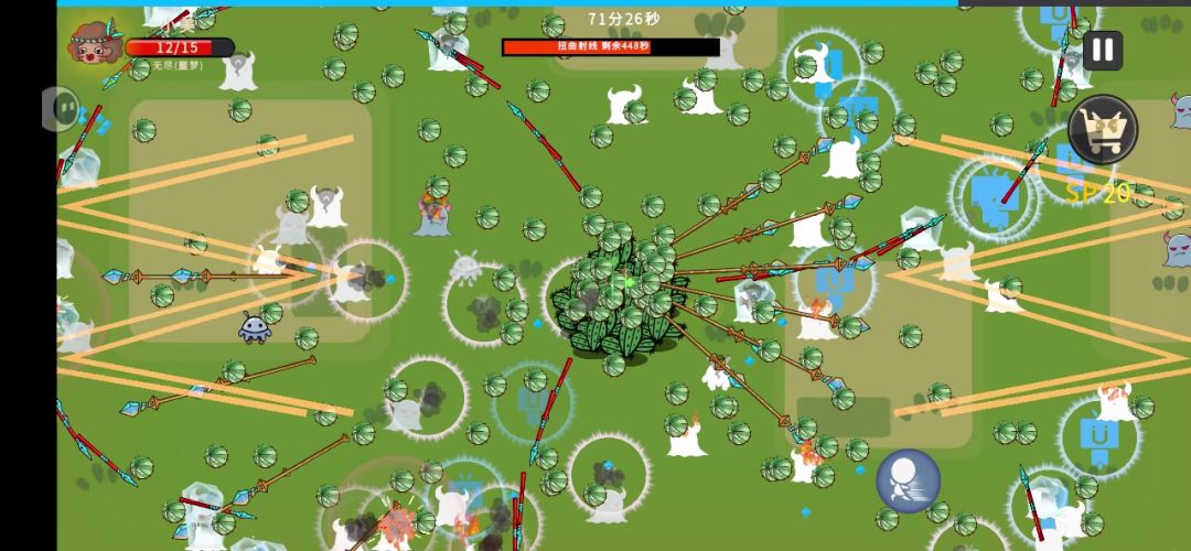 正常游玩大概到十五六分钟后就会明显的卡顿,琢磨了一下觉得可能是触发技能频率太快导致的,但是其余武器攻击太低没技能输出捉急,于是尝试了下初始攻击300的三个武器,散弹,喷火器,手弩 其中以喷火器表现最好 相比较而言,只需要堆换弹时间和数量就可以了,但是注意不要选概率加一子弹,千万不要选,喷火的子弹数量太多也会导致卡死 只要八发子弹就可以围成一圈,但是七发也够用