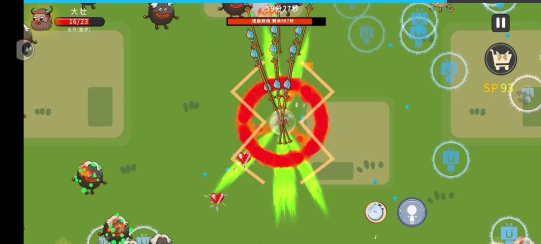 大大意了,死了。 喷火开局要自己控制方向,杀怪。如果开局能拿到献祭,那就很棒了,然后慢慢卖血,卖完血转一圈,怪全死了。然后再闪避回血。尽量加闪避率。然后就可以站着不动了。半挂机纯娱乐。[表情_斜眼笑][表情_酷]