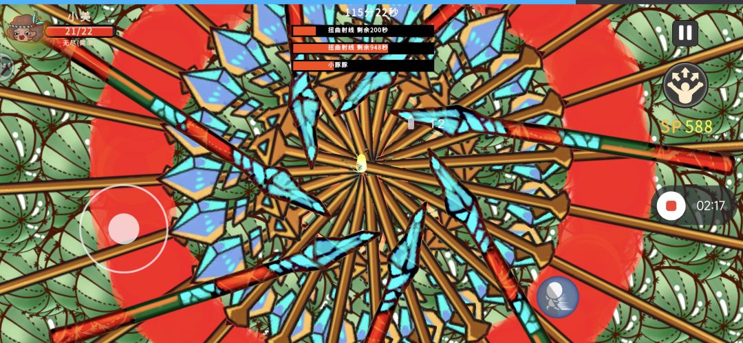 武器:初始武器 角色:小美 技能:击败【黑洞(必要,他有概率9999伤)炸弹+任意】+射击【箭或者其他】+命中【火球或者石头】 技能额外强化:【面具,冰冻,回血】 角色强化:优先叠加类【击杀回血,击杀加伤,闪避,使用技能回血,减CD】 次级受击【无敌+1,双爆50%,最大射速,sp+2,】 游玩体验:后面啥都不做都死不了,画面太卡了打到1小时就结束了,只需要在射线把血量打到4的时候用技能就好了,