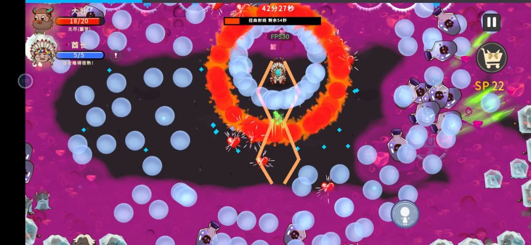 喷火枪选择站立buff 枪技能随便选 最后选择吃经验就行 buff选杀人有几率分裂 和子弹增大 再选几个杀500回一滴血 闪避回血 各种回血buff 就可以放在旁边看了#攻略#新手攻略