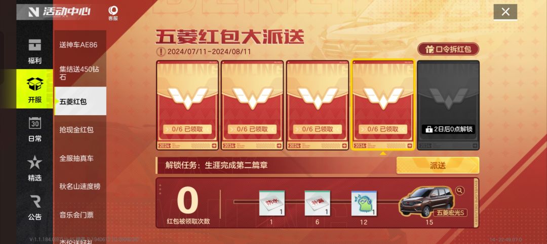 五菱宏光红包派送10连抽,互助(有兑换码)
