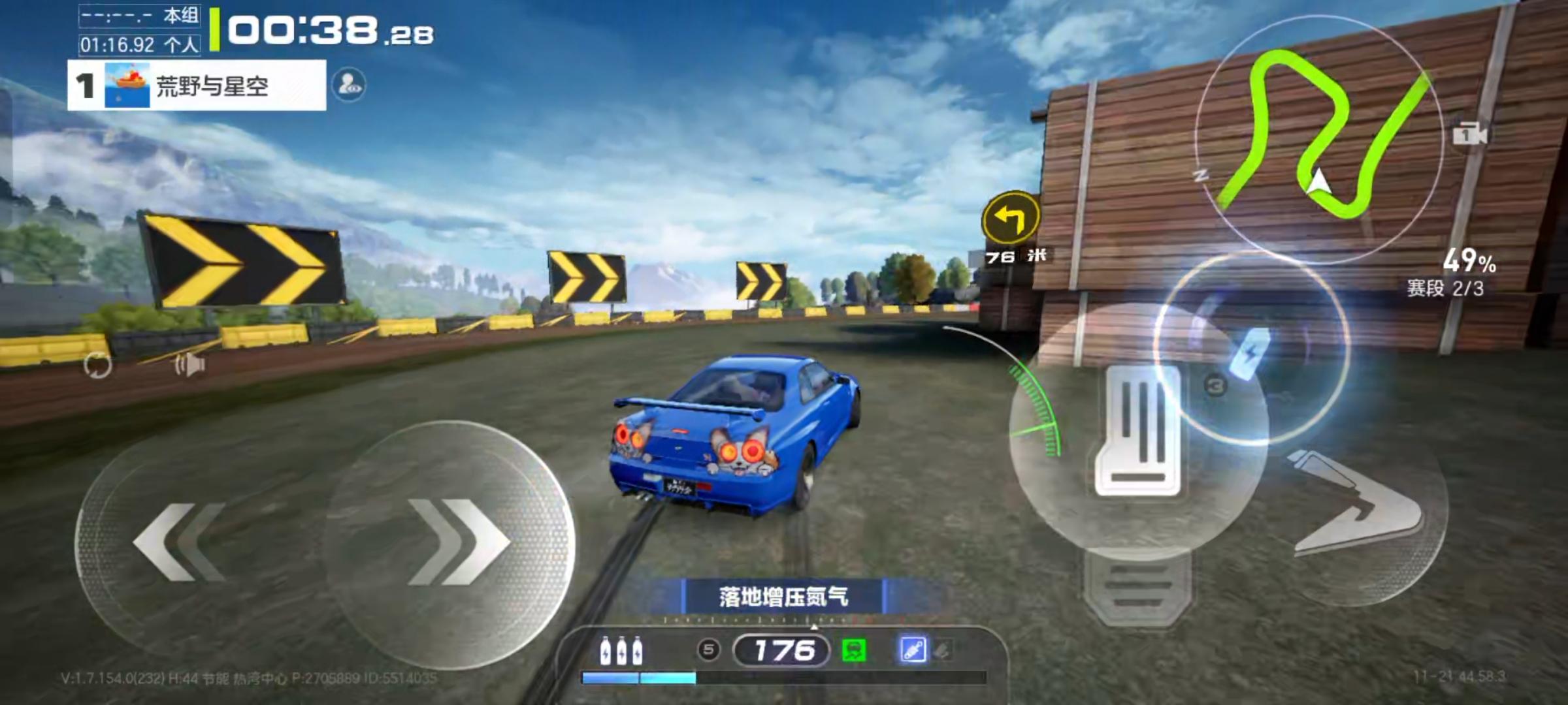 动力十足啊,惯性和手刹速度快,转向好把握,极速状态下也是一流。轻微碰撞降速了一点一个氮气直接拉满,而且这集气效率也挺好的,很符合我个人手感。