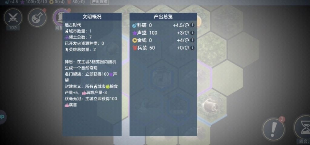 开局先刷神秘图纸和家族部曲,然后守护者点天赋守护者,等一回合守护者带移民到主城不远的地方开分城,让追随者先开路,最好是三角形扩张,这样容易防守。 同时科技点最下面的城墙,然后再点弓箭手,弓箭手出来了,我们就可以让追随者的兵更换,然后去开迷雾,找事件拿奖励。 事件奖励是会变换的,前期最好的是产能和兵力。 下一个科技点历法,研究巨石阵,接下来点文字,然后直接开弩手,不用管科技惩罚。 开局城池建筑先市政