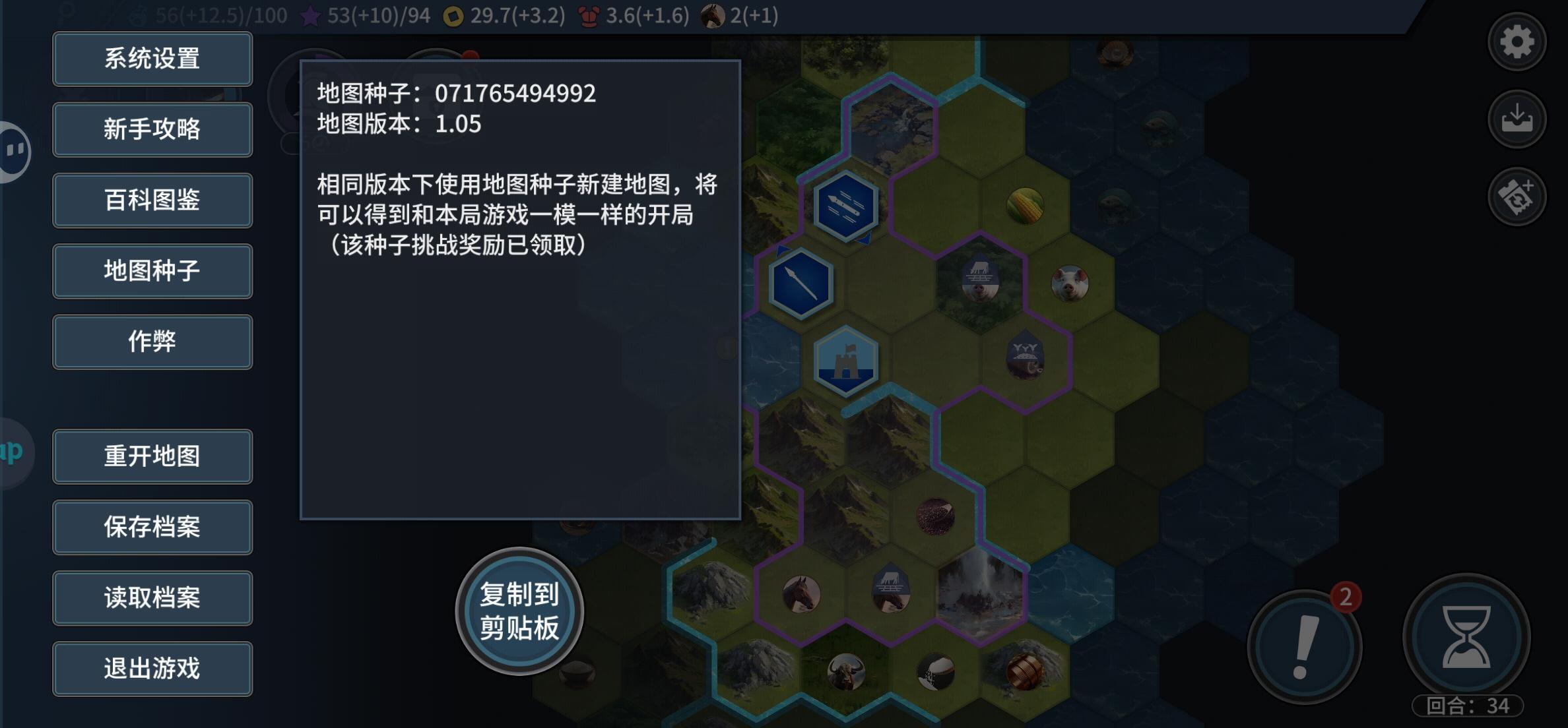 分享个图,071764502873,靠海靠河,能吃野味密林,海还是通的,能沿海收割营地,下面两格两个君主喜好(绵羊),可以玩神王(树有点少,自己多种)。防守压力较小,前面拿单城科研+5,第一波点出船直接起飞