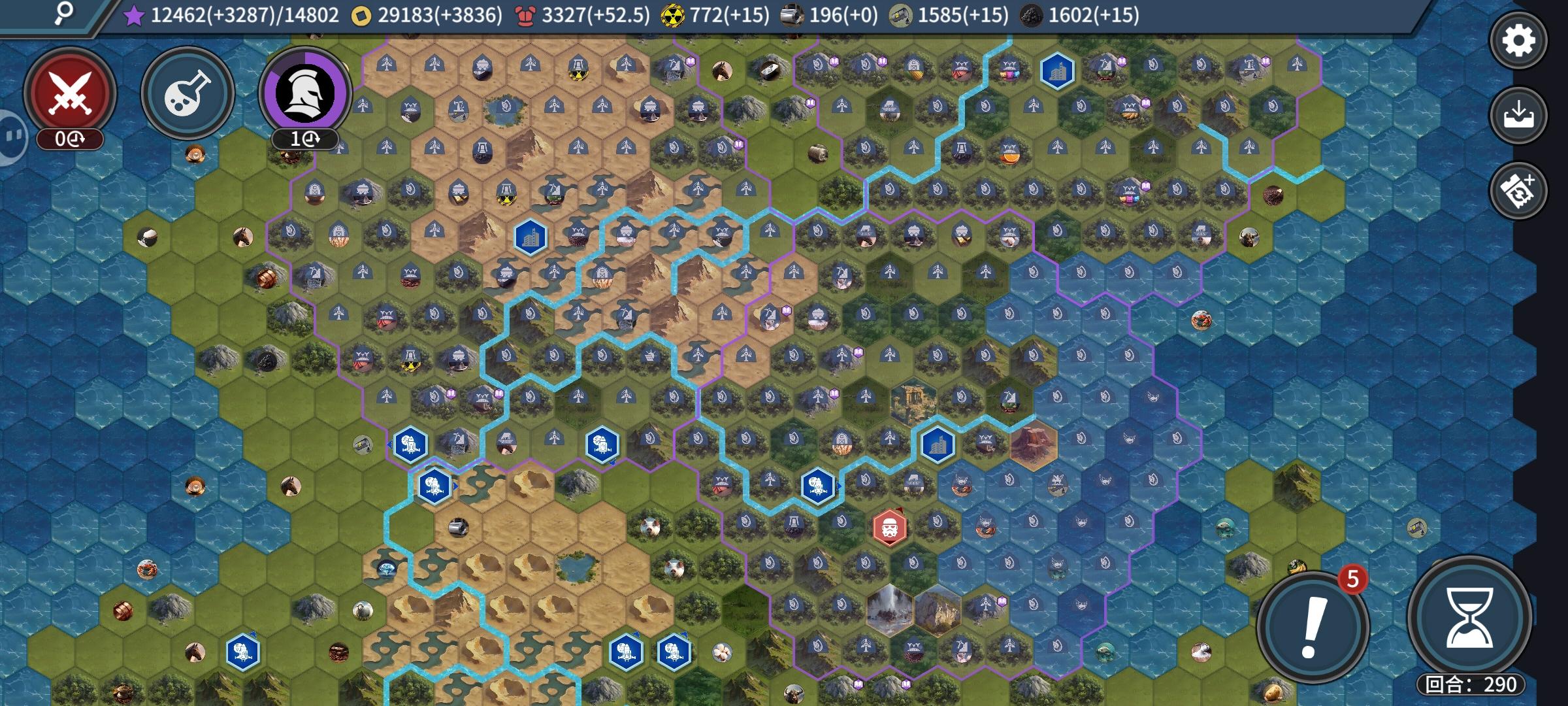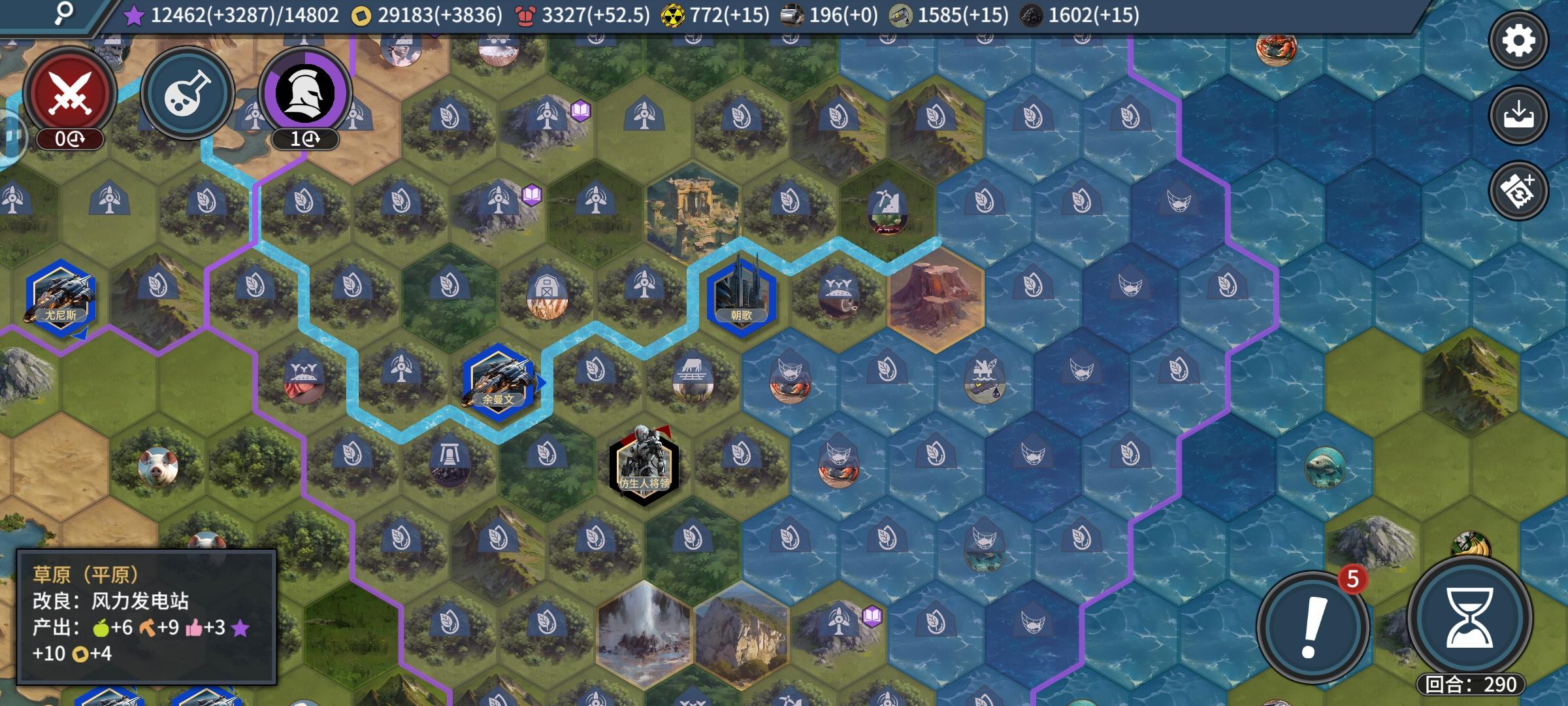 如果说诸葛亮是唯一战略英雄的话,那唯一战略君主则是海之子。战略和战术最大的不同,在于一个是增加数值,一个是改变玩法,比如诸葛亮创造一个不战之地。海之子最厉害的地方在于远航,可以挑一个深海位置建一个副城,主城诸葛亮坐镇。那么在英国的海军出现之前,你是一直无敌的,而且有威胁的敌人也只有海军,敌方陆军都是免费练级对象。操作如上图,正常玩230回合能科技胜利的还可以顺便赚200-300左右的券,因为