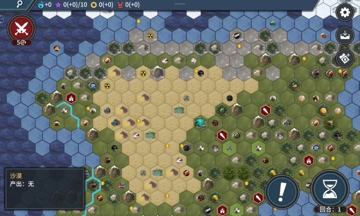 前期防御压力较小,后期需要去沙漠开城,前期密林,野味提供粮食和生产力何运,能提供大量金钱刚开始的位置,旁边就有铁矿
