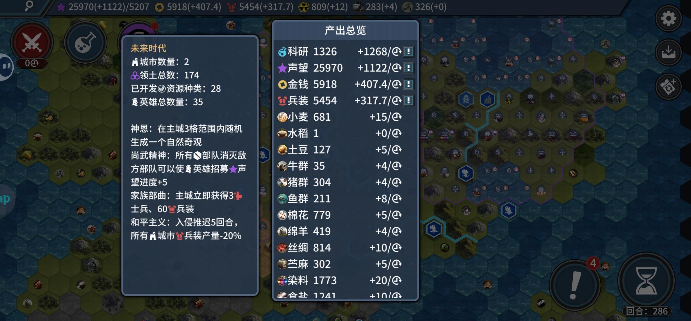 1.这是个单机游戏,开局不用刷那么多东西吧,刷图就算了还要刷英雄初始技能,追随者开始建议第一页必出对野怪30%伤害那个。还要刷全图效果,建议全图效果那个可以单选确定,然后翻页再选。2.战略资源问题,建议战略资源提前两个时代出现,打成吉思汗用狙了,到打拿破仑还得现代步兵,不能出飞机坦克,没资源,这段时间根本不够发现矿,再跑过去占基地,再攒够哪怕一波兵的资源。3.你们既然做了那么多主角技能,是不是