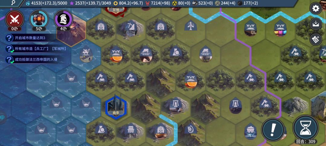 城池开太多了,被推一个就很难受,我就没开很多城。然后兵太少了,打不过。