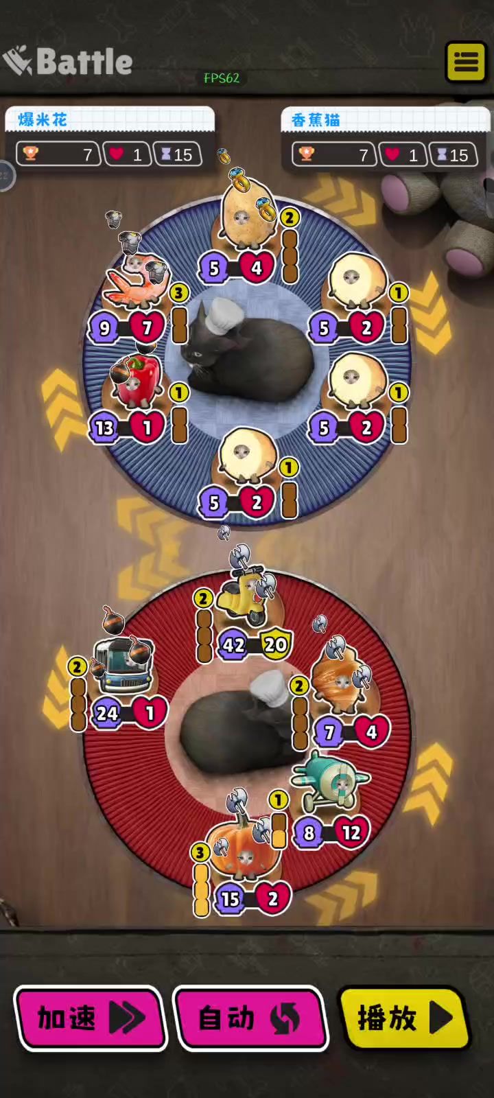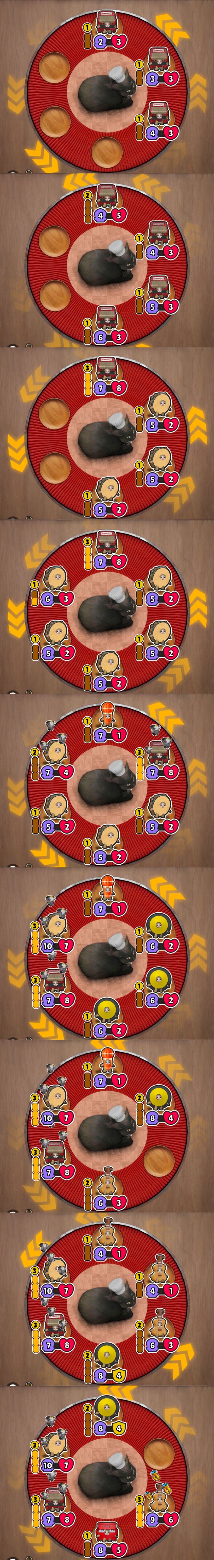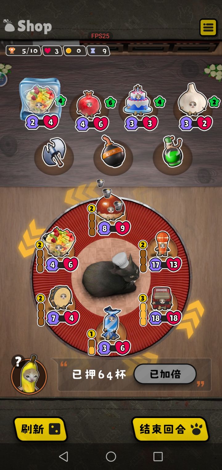 前期拿交通工具猫过度,买菠萝也不错,升2直接盲草莓花椰菜,3级拿椰子,其他格子拿+buff的猫,中期适当卖血,草莓椰子花椰菜还有嘲讽面具和盔甲有就拿,不能拿就锁,其他的可以拿+属性的猫配面包使用,等石榴一来直接起飞