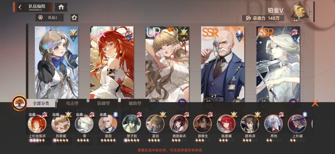 #TapTap年度游戏大赏应援 萌新零氪或者低氪的话,大家可以选择过完6-1的剧情然后找一个强力的社团,对于低氪党还是能拿到不少资源的,刚刚开服的时候一定要选择好阵容这种回合制游戏尤其是低氪本来资源就有限,这里给大家推荐几套比较亲民的阵容,第一个就是我们的楚天骄带领的火队阵容组成:前排诺顿或上杉越,中排楚子航,后排夏弥,风间,苏恩曦援助康斯坦丁,零,巨门。这一套阵容缺点是前期过度期比较弱势,打桩