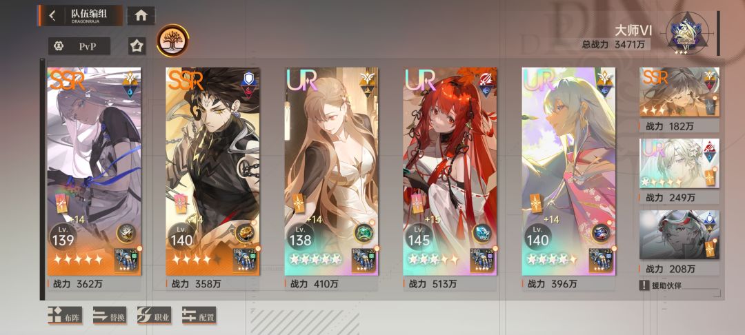 目前全游最强阵容:零,薯片,巨门,绘梨衣,路鸣泽(攻略按这个阵容写,零氪别怕造价高,先看) 解释一下这里为什么用巨门,巨门到b血统之后已经属于是全游最肉坦了,也就觉醒帕西能和他对抗一下,再者就是可以省格子给其他角色上阵,至于为什么不用上山月和曼斯,这两个虽然面板减伤看着挺高其实打PVP也就那样因为后面减伤会被稀释再加上绘梨衣五星打的是无视减伤的真伤你减伤一点用没有不如换巨门留格子省资源 先说微氪