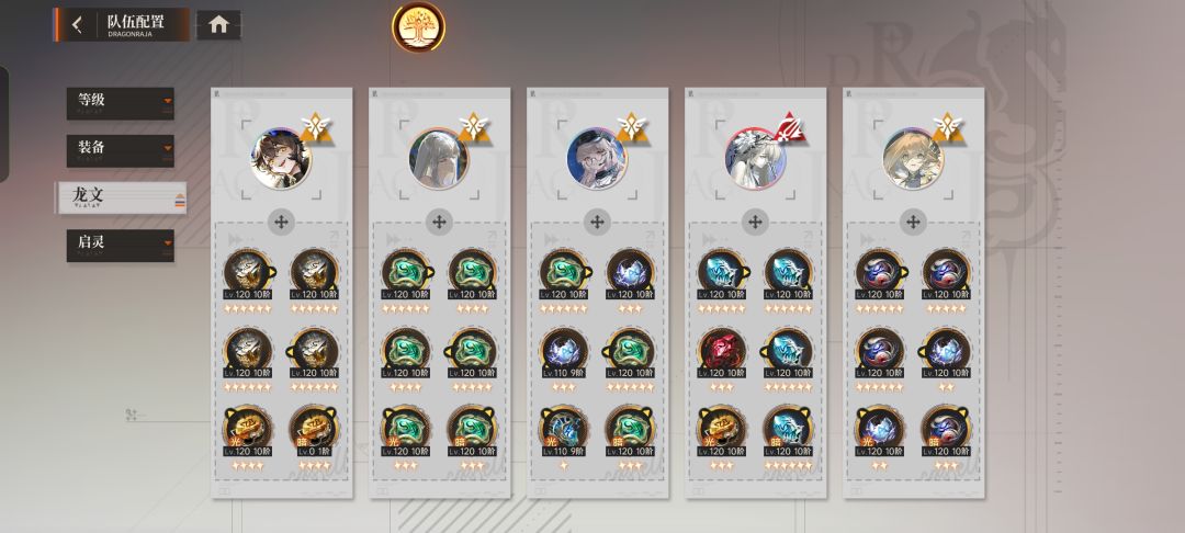 七宗罪只带暴怒,龙文除诺诺外其他角色白帝光都不要带,后排风间琉璃站中间确保精神领域的概率追加普攻给到耶梦加得和诺诺,风间琉璃可以不带专武,带冥照增幅一样