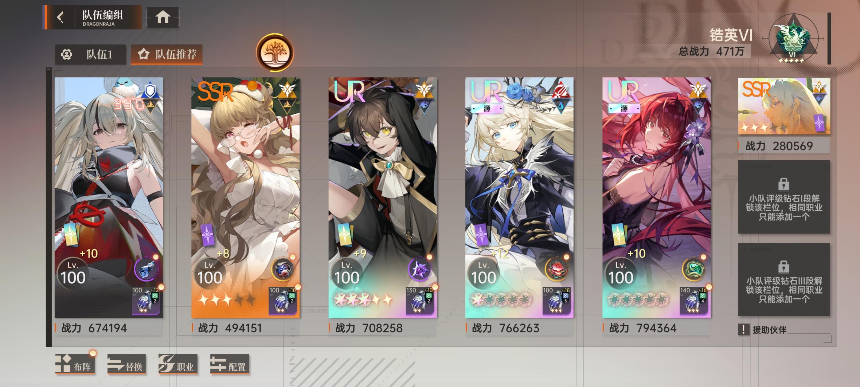 如图,依旧楚夏队伍,存着限定和超限票,最近有点犹豫,到底是拜访龙路然后超限也砸龙路,还是拜访剑域苏茜啊,我感觉苏茜有点强,来个大佬指点一下#龙族卡塞尔之门