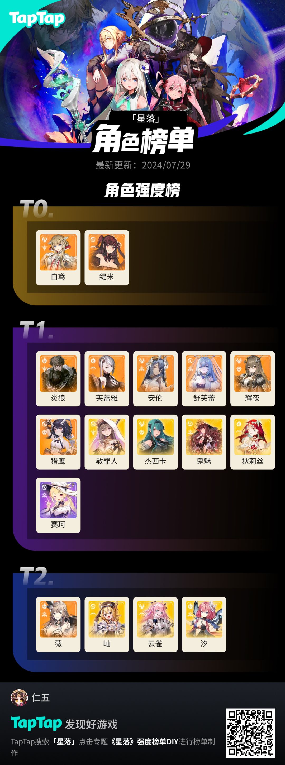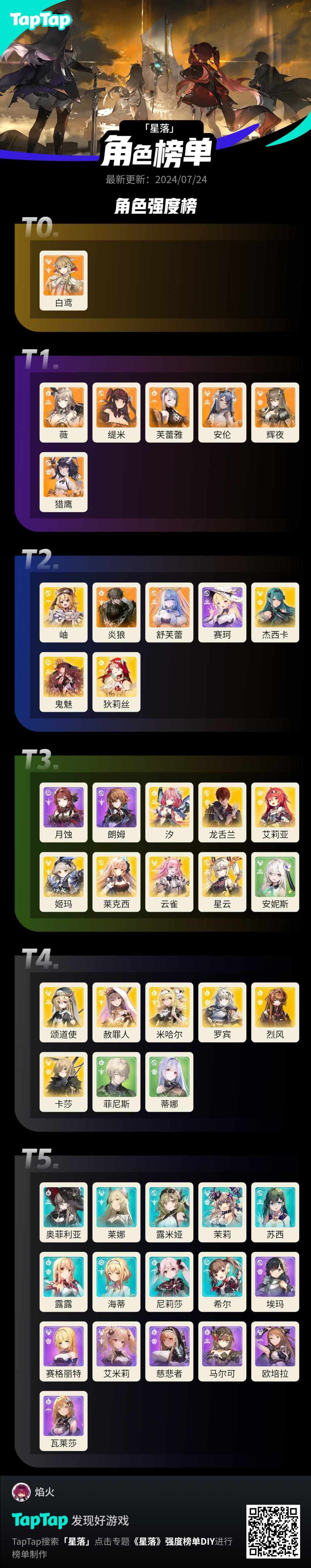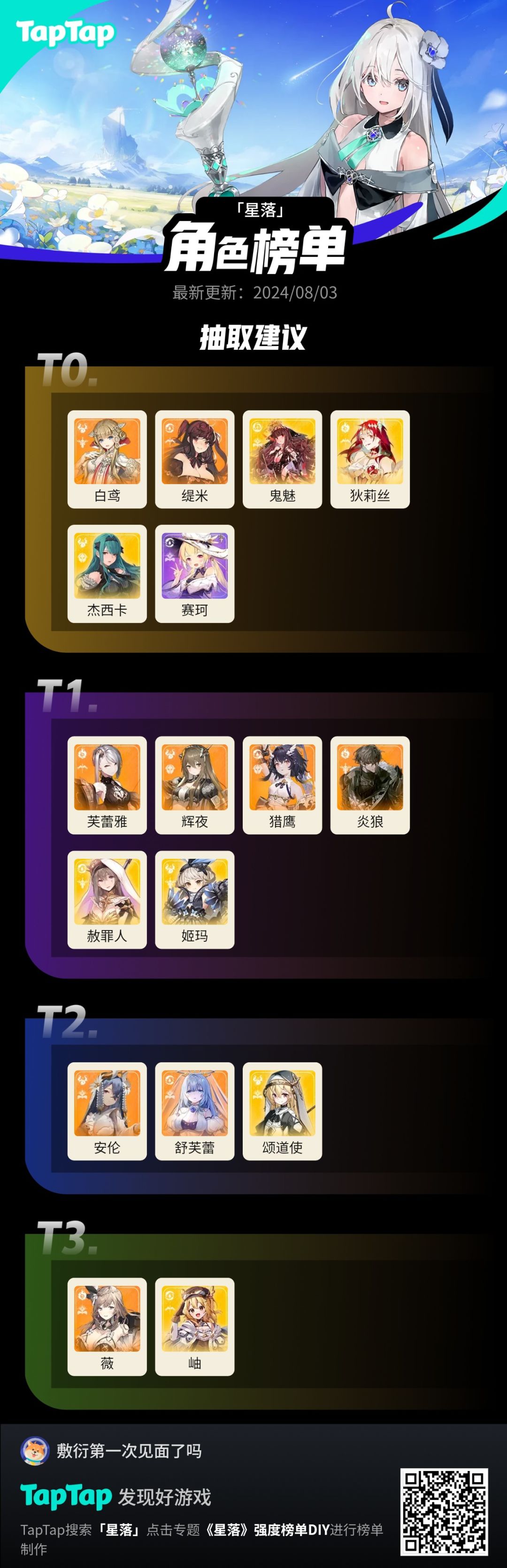[星落]三测全角色T度榜单!