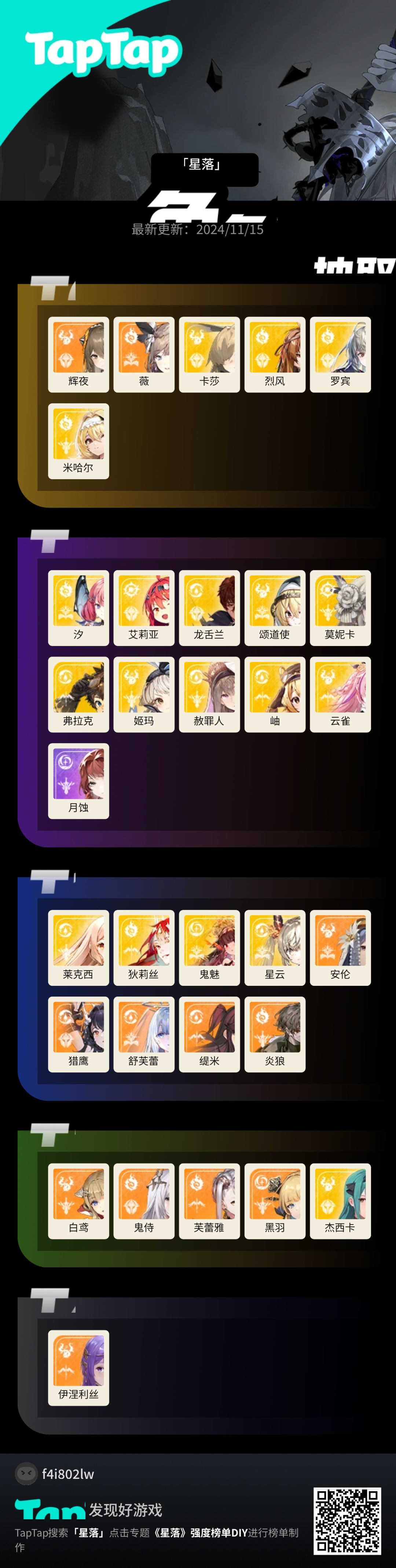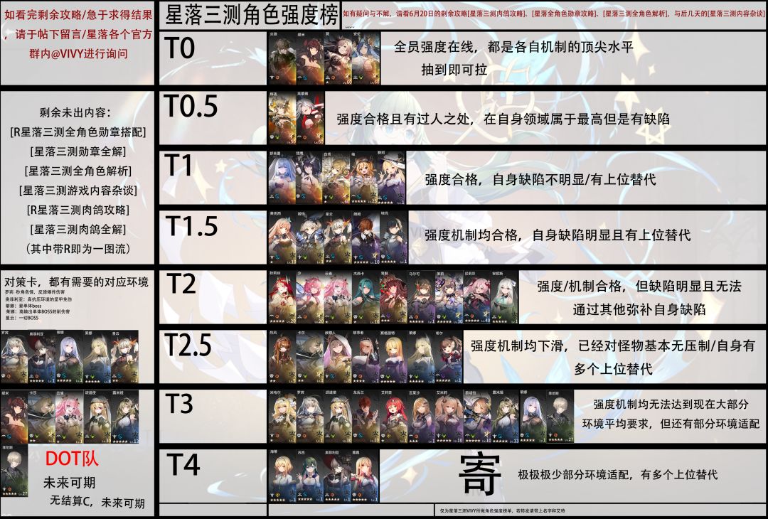 转发一个其他大佬做的一图流,感觉比较客观,分析的也比我的要更加详细 #星落强度榜