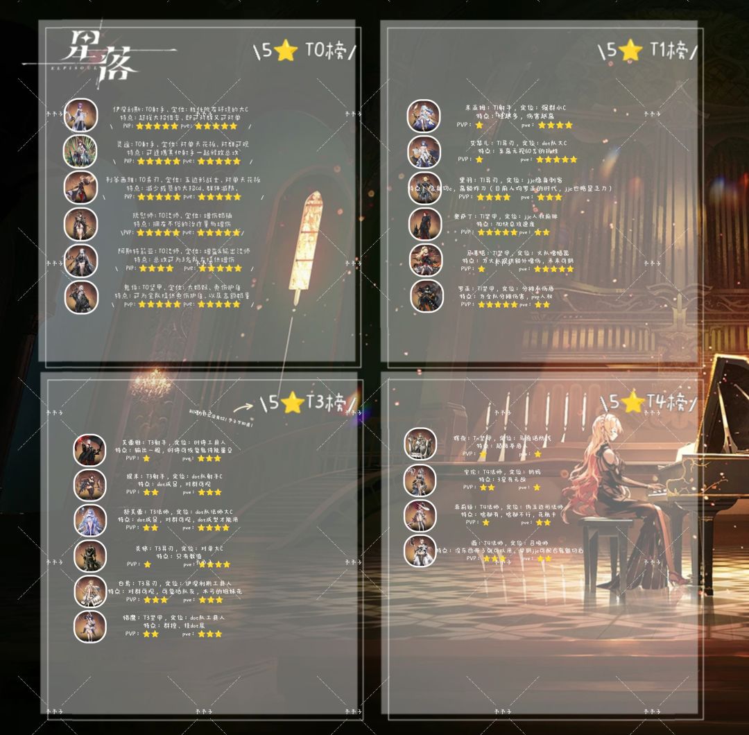 星落五星养成推荐榜,可根据榜单养成哦~