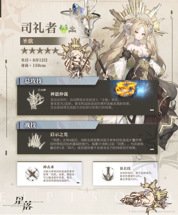 司礼者角色卡情报~如下↓ ﹌﹌﹌﹌﹌﹌﹌﹌﹌﹌﹌﹌﹌﹌﹌﹌﹌﹌﹌﹌ 定位:减防/群伤介绍:司礼者对单的情况下更偏向于辅C,减防的同时也有一定的输出能力;但是她本身机制围绕着对群环境而设计的(水对群环境太少了)测试毒点: 1.司礼者战技减防在战技出伤之后才挂上,意味着她的战技吃不到自己的减防,且第五次平A时,战技动画会吞掉平A(少一段300%倍率的平A这样)2.作为自动释放,时间太靠后了