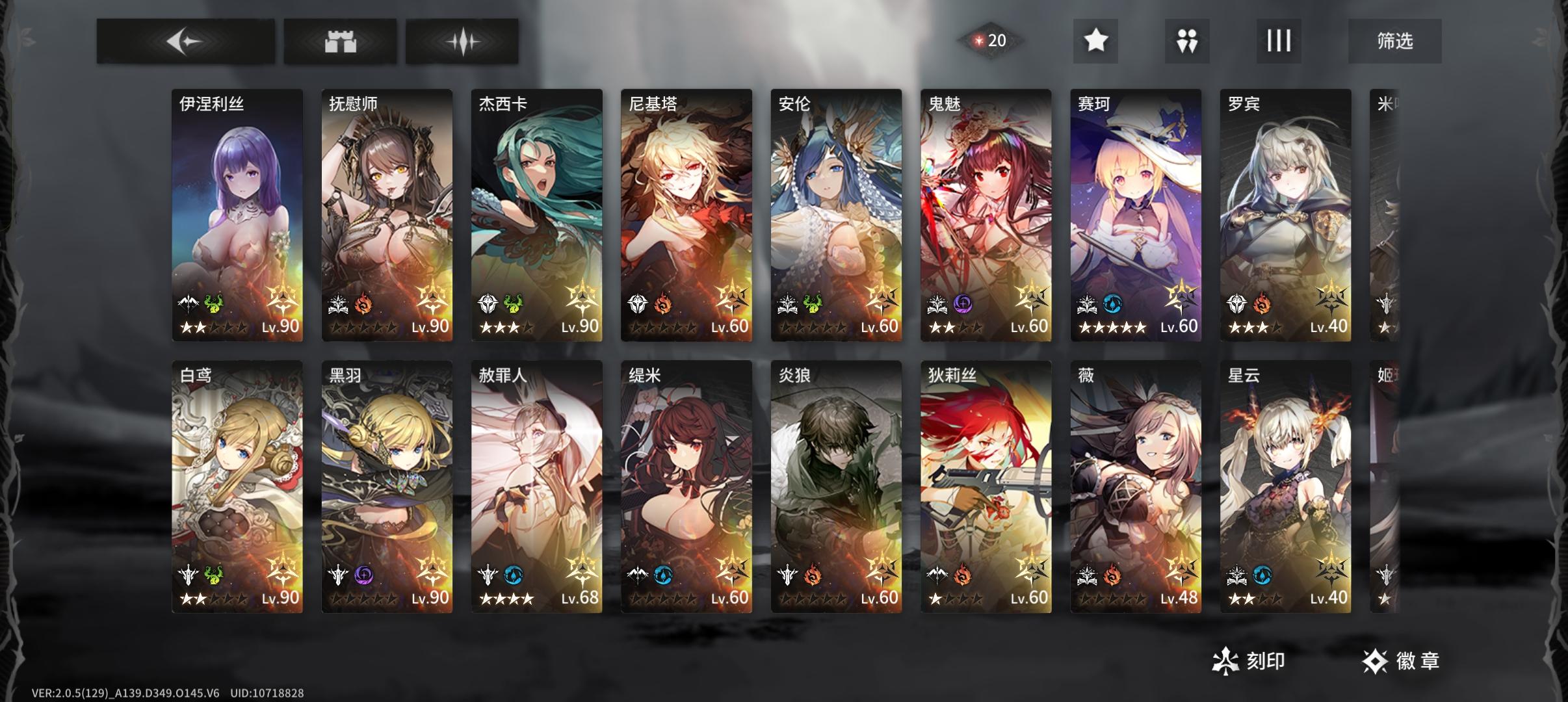 玩了480天,虽然很多box没补齐,但是关键角色都有了,已经是属于高战玩家之一,公会战这期表现也还行(谁说咱零氪玩家不能和微氪党比较?),周卡诱惑确实很大但我还是忍住没买,一直都是零氪状态,得益于我的欧气和屯屯鼠光环加持(虽然最近两期卡池不咋地,安瑞儿90出的)幻象就真的无能为力了,最高好像也就六十多,你说jjc?我懒不想打嘿嘿刻印也是攒了好久,下个月才能升弓的270,徽章倒是运气也爆棚(图片