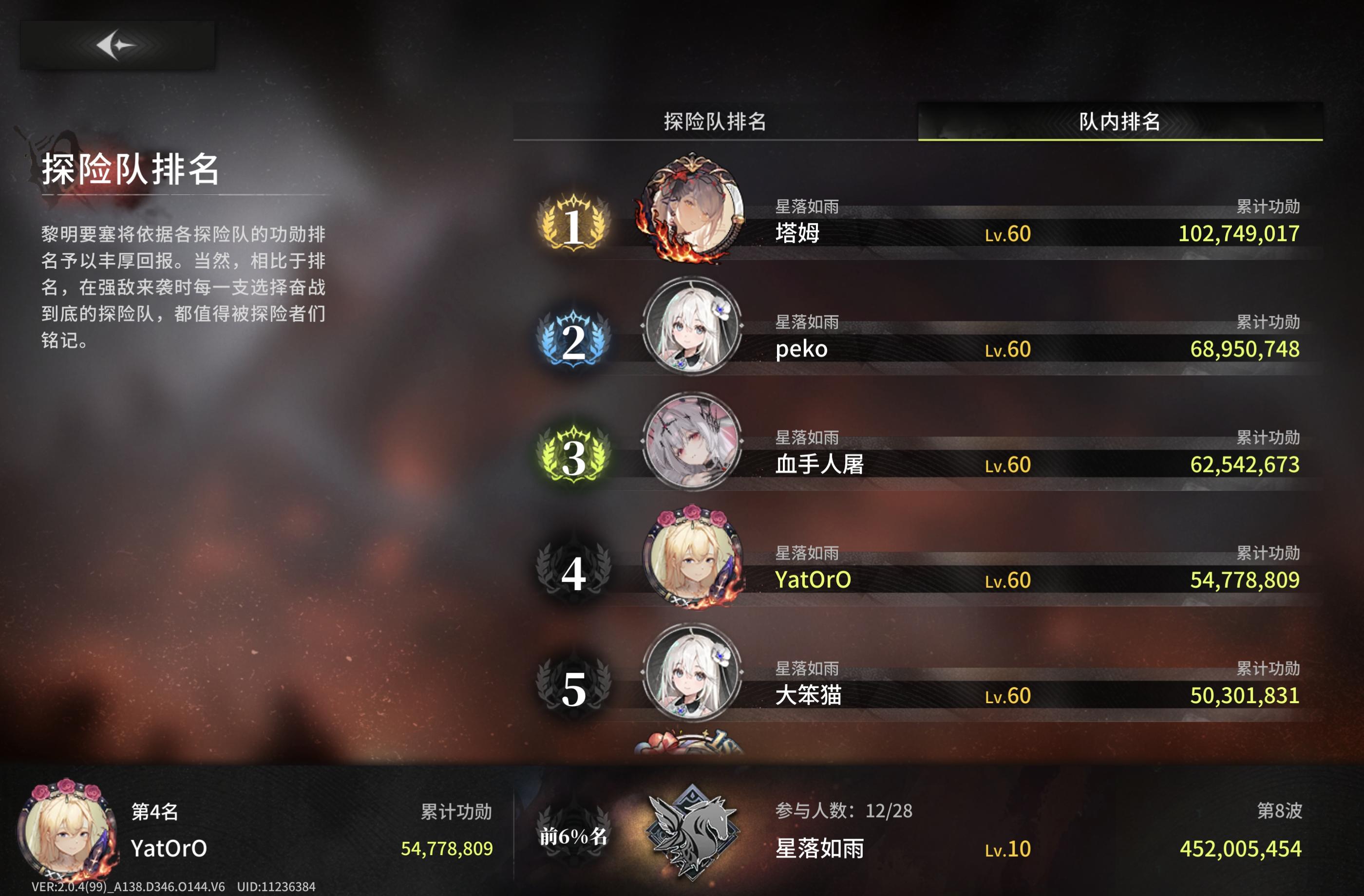 今年的公会战一览去年12月份加入天人组织,打的第一期公会战忘记截图了,就从第二期(星落第六期公会战)开始吧。第六期公会战(2025.1.24-2025.1.31)第七期公会战(2025.2.21-2025.2.28)第八期公会战(2025.3.21-2025.3.26)第九期公会战(2025.4.25-2025.4.30)第十期公会战(2025.5.23-2025.5.2