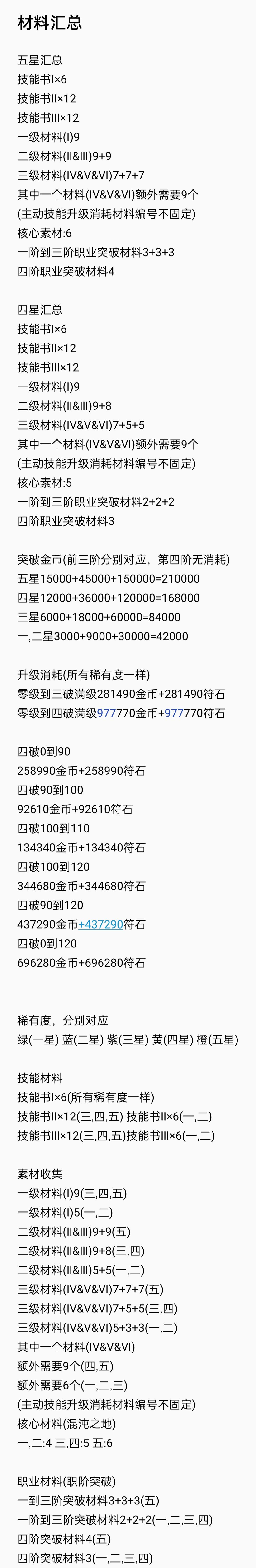 贴张之前统计的养成材料