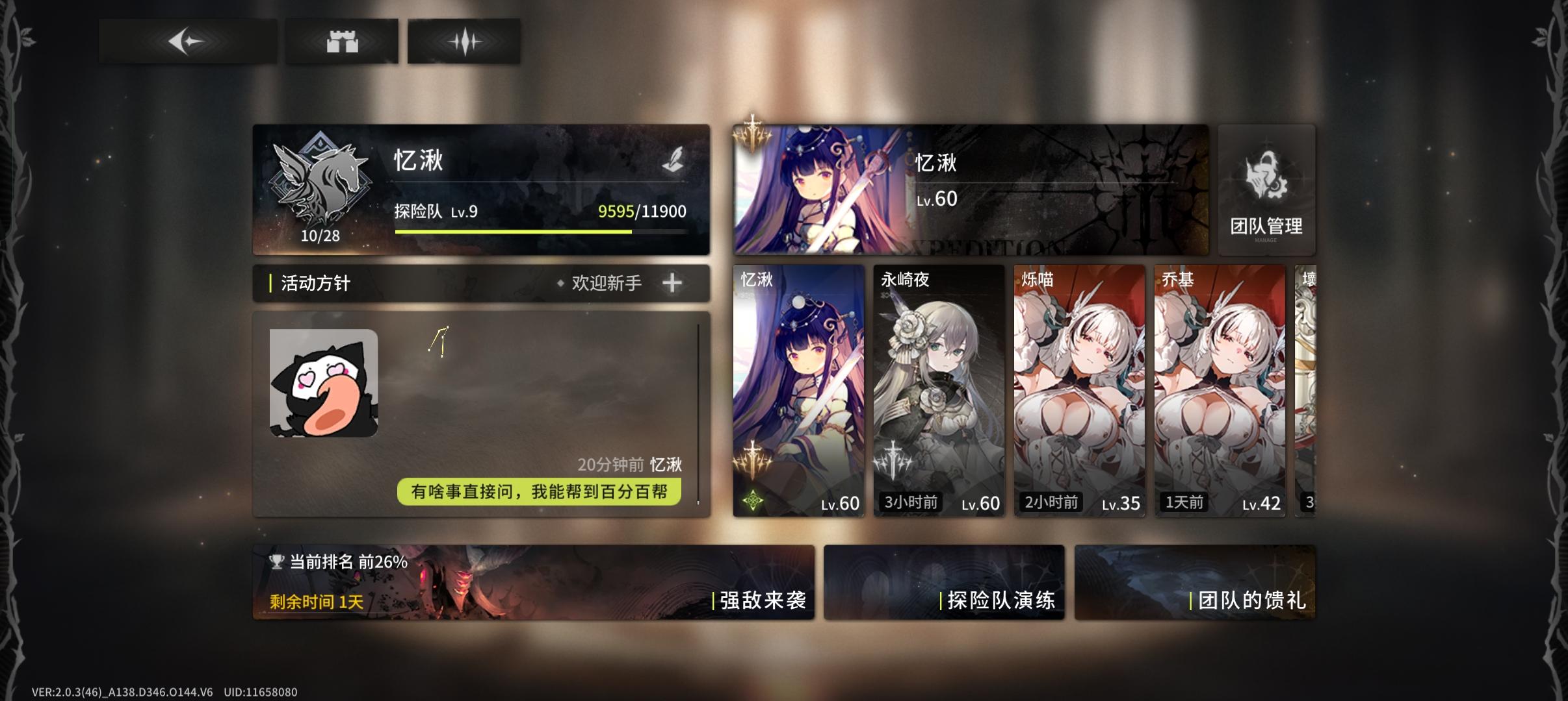 欢迎萌新入会,友好,无压力,因为我是开服玩家,满练度,所以萌新可以来我们会领个1000欧泊奖励