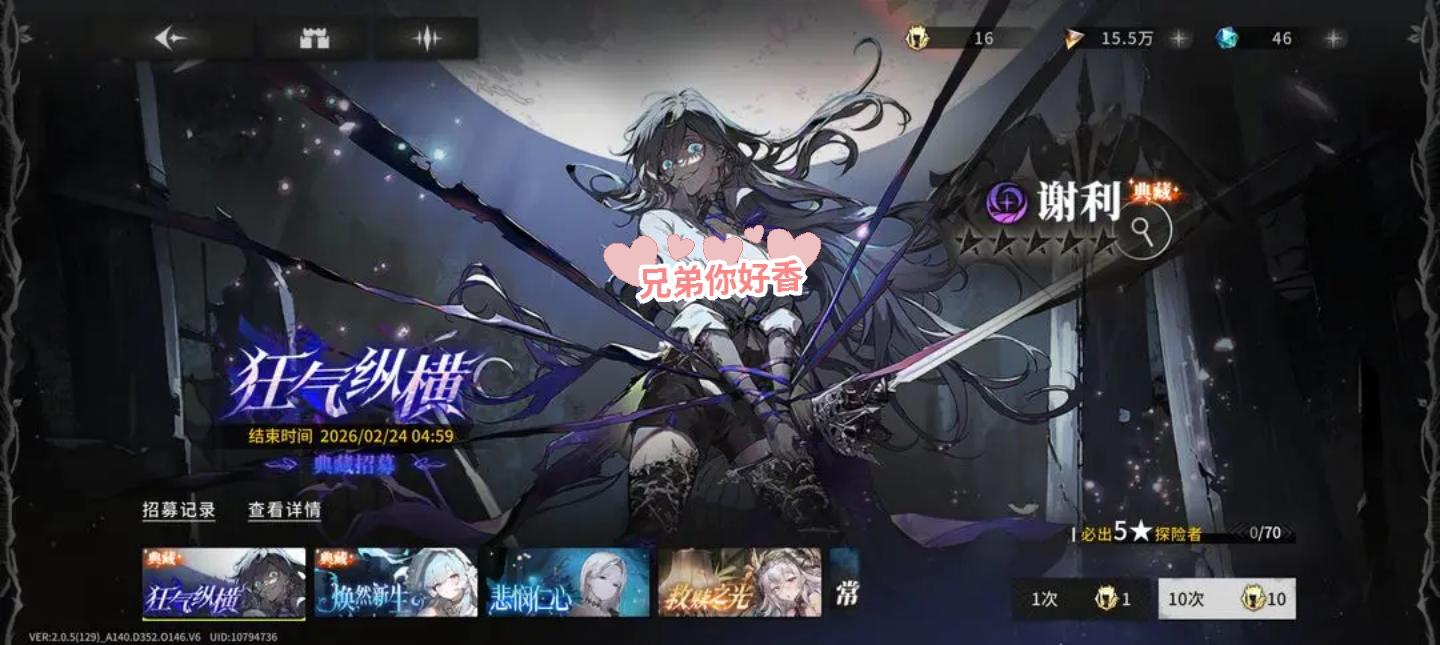 结果:二百二十抽左右,出了六个本体和一个安瑞思觉醒,期间这个守护者差点吃满还好没歪,雪莉不知道强度先观望