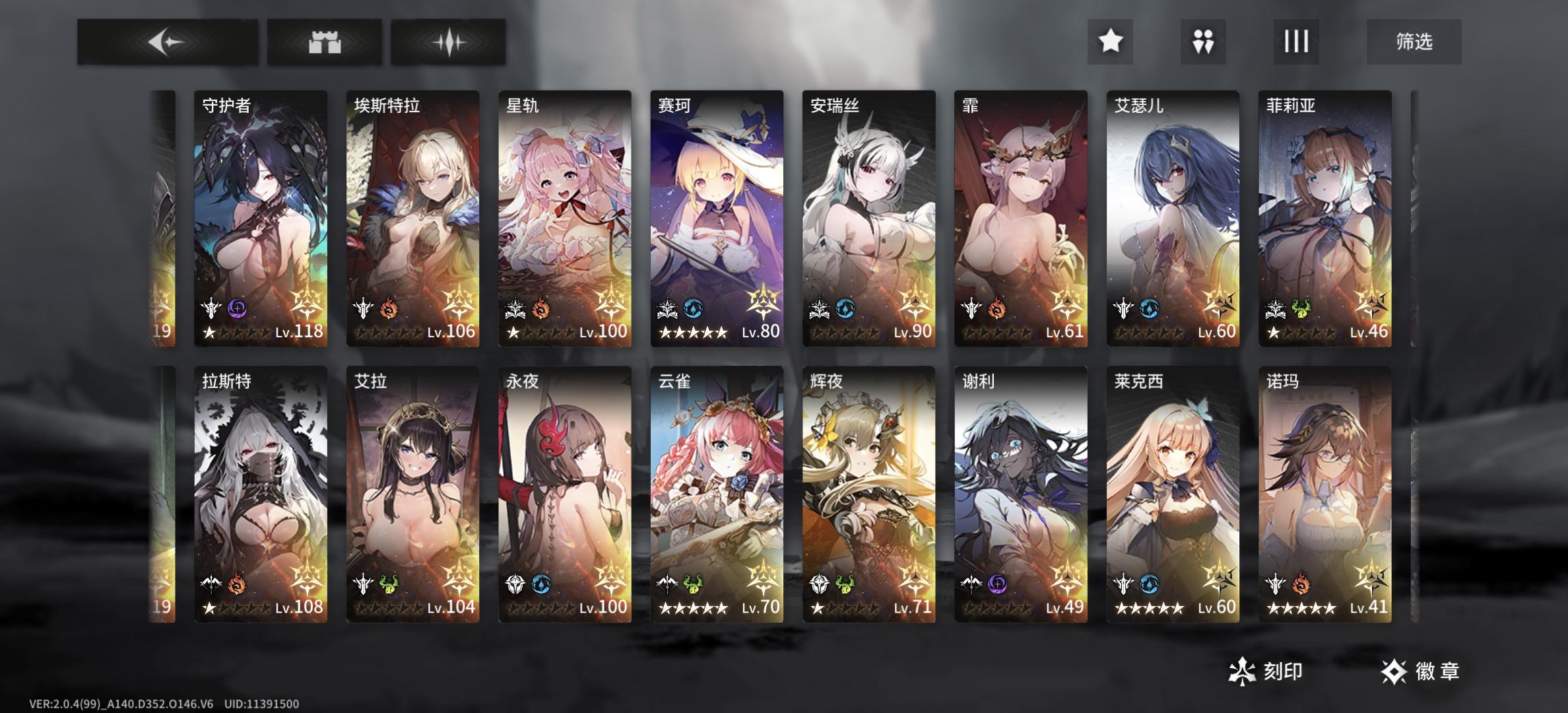 玩了480天,虽然很多box没补齐,但是关键角色都有了,已经是属于高战玩家之一,公会战这期表现也还行(谁说咱零氪玩家不能和微氪党比较?),周卡诱惑确实很大但我还是忍住没买,一直都是零氪状态,得益于我的欧气和屯屯鼠光环加持(虽然最近两期卡池不咋地,安瑞儿90出的)幻象就真的无能为力了,最高好像也就六十多,你说jjc?我懒不想打嘿嘿刻印也是攒了好久,下个月才能升弓的270,徽章倒是运气也爆棚(图片