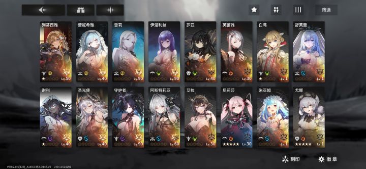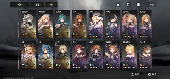 练度挺低,入坑一周多,只有列蒂西雅是1破,看运气,谢利伤害不太稳定