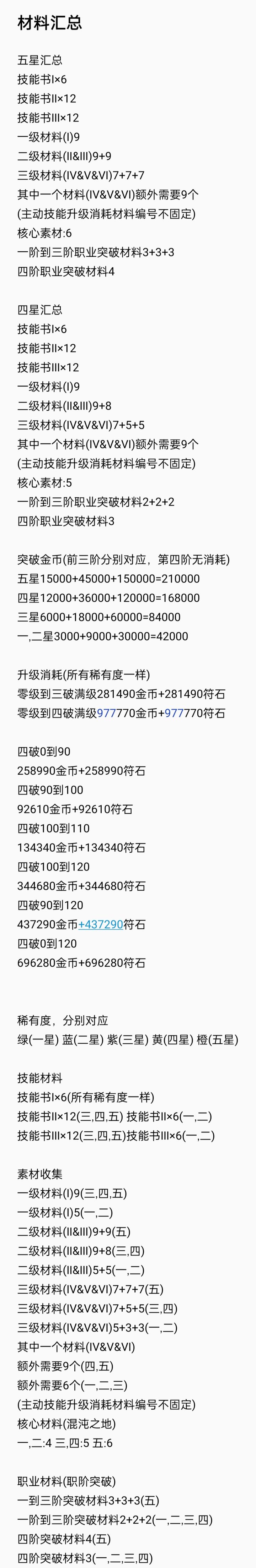 贴张之前统计的养成材料