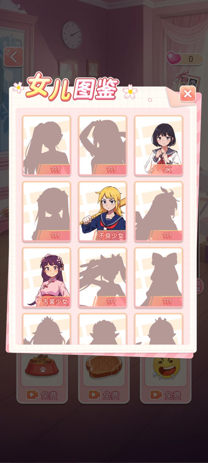 🎮可玩性:可以选择星座血型性格,可以换装PK,可模拟人生,可收集女儿图鉴,可伙伴(男)对话,可扭蛋签到,可完成任务