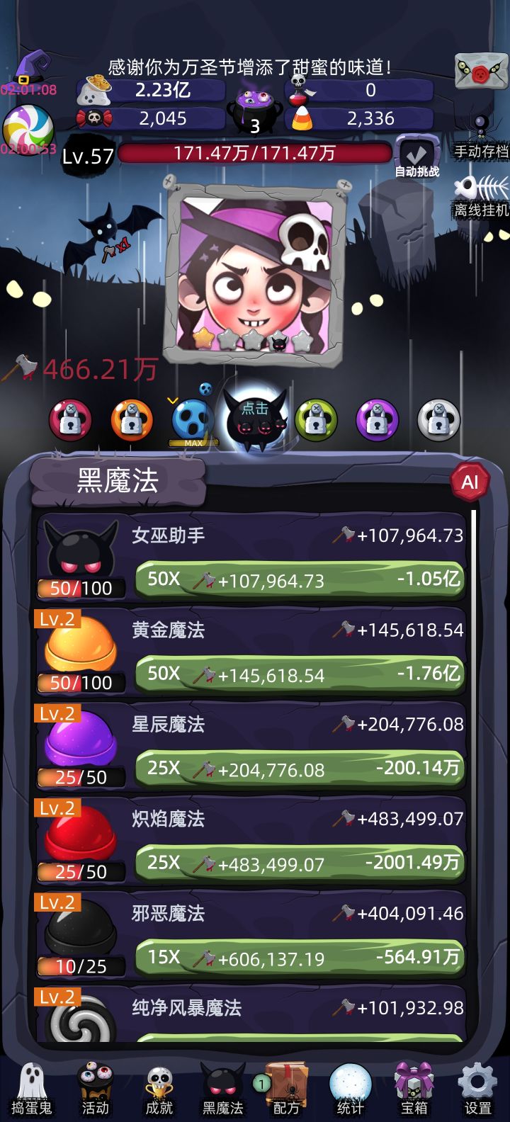 : 广告不用看完,进入广告以后立马退出广告,照样能获得奖励。南瓜看5个,后续就能免广告领奖励,这个是在线获得游戏金币的最大途径。另有宝箱广告10个,冷却时间30秒。左上角2处各24个广告,冷却时间1分钟,全部看完有12小时双倍,学习技能一个广告还能增加15分钟。看着广告挺多,实则点两下一个广告就看完了
