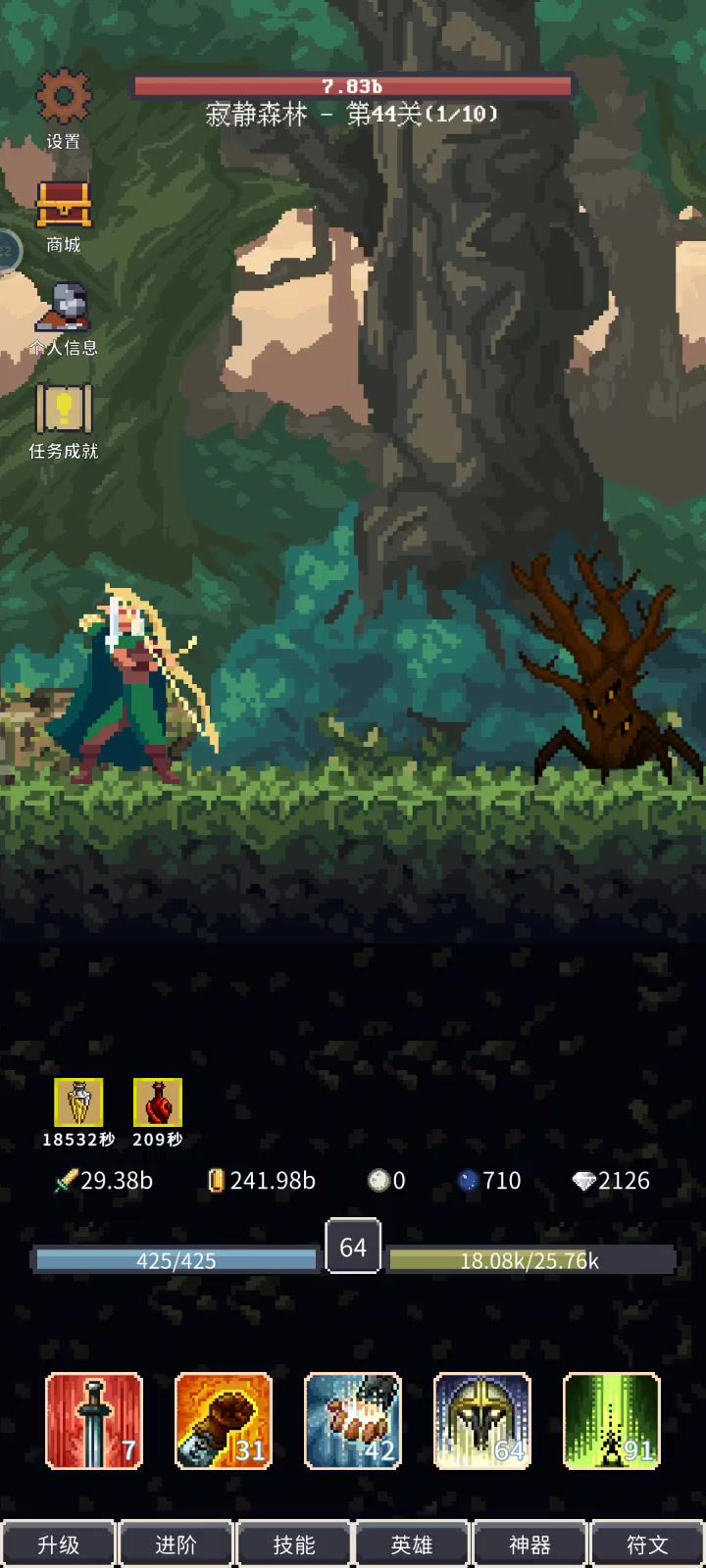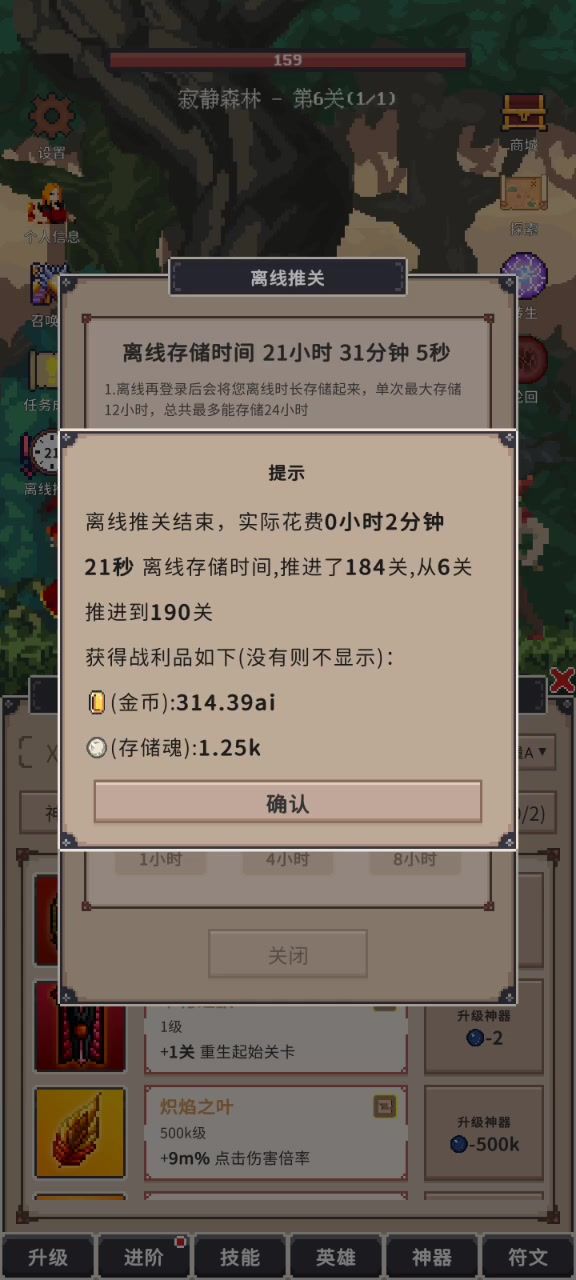 这游戏有个机制,历史最高关卡的90%,比如你最高200万关,那么前180万关的怪物属性是大幅度降低的,你只需要转生之后把魂分配好,就能稳稳推到180万关,不用担心打不过。而这个离线推关就是用在历史最高关卡的前90%。注意,离线推关的效率,跟移速和施法速度正相关,也就是最后两个神器,想要最大化的利用离线推关,就要把这两个神器点满。我是84万关左右才能把它俩点满,再用离线推关,如果你关卡低那就自己衡量。