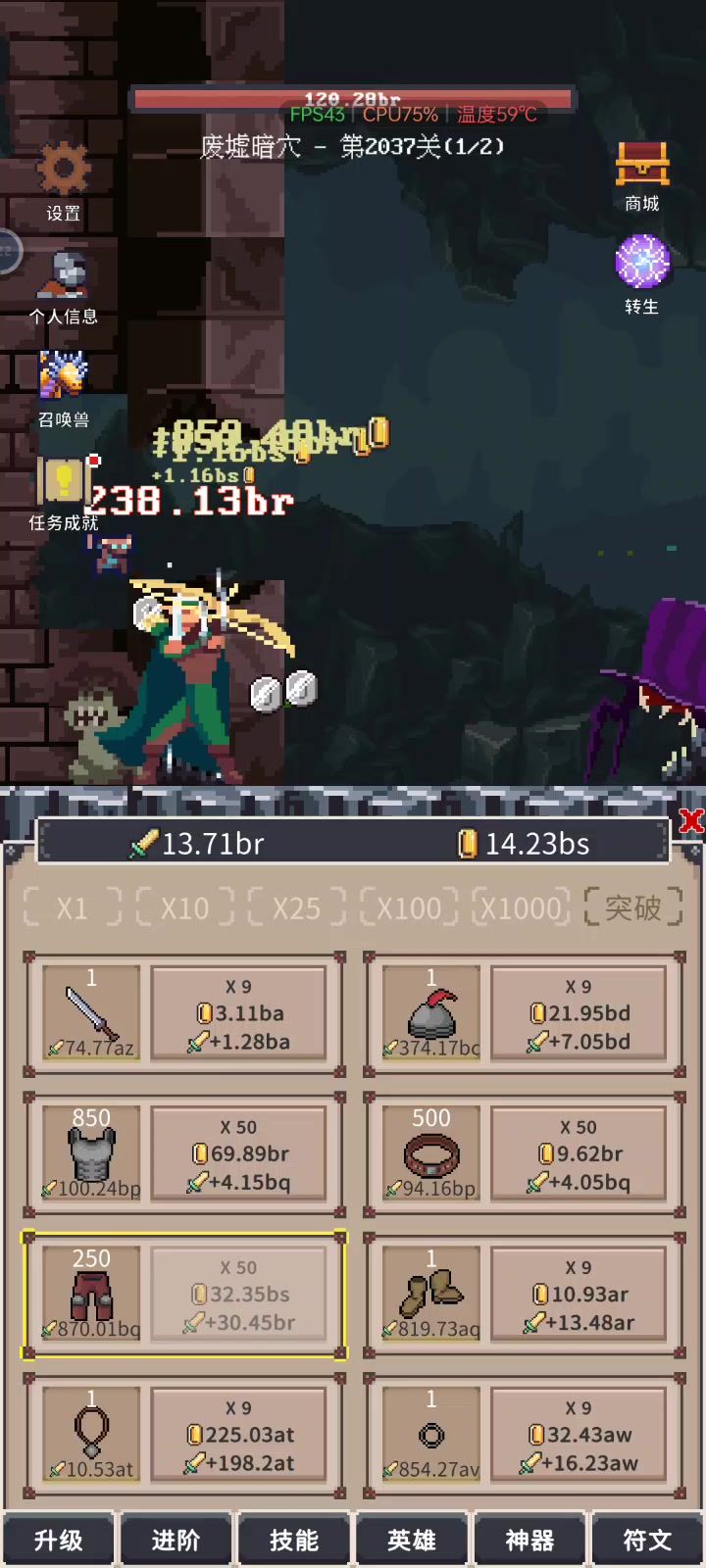 刚玩比较耗时间,一百关出头就卡,有面具就升面具,没面具魂就留着加伤害开荒,开荒解锁成就和过关送钻石,然后买所有英雄,我是有留魂的习惯刚开始是100然后1k-1m加伤害,升面具也是一样的收益,只要卡我一分钟我就转生,然后周而复始。