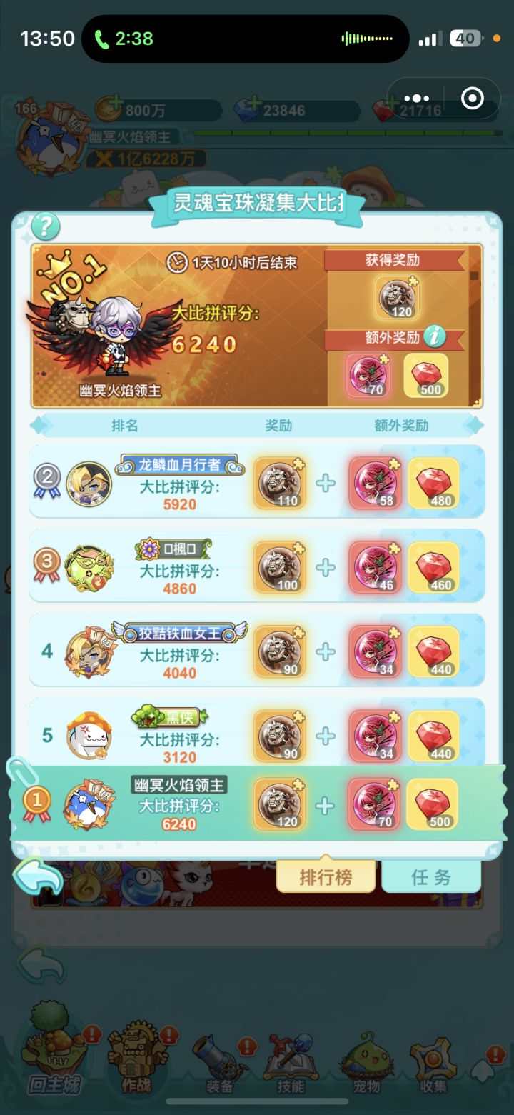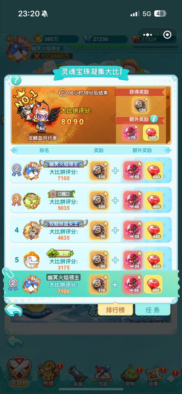 一个活动,突然冒出来一个小号。2000K战力使劲抢榜,最后一天。我7100分数,10.30的时候,他从6100瞬间涨到8090。开箱子运气好?