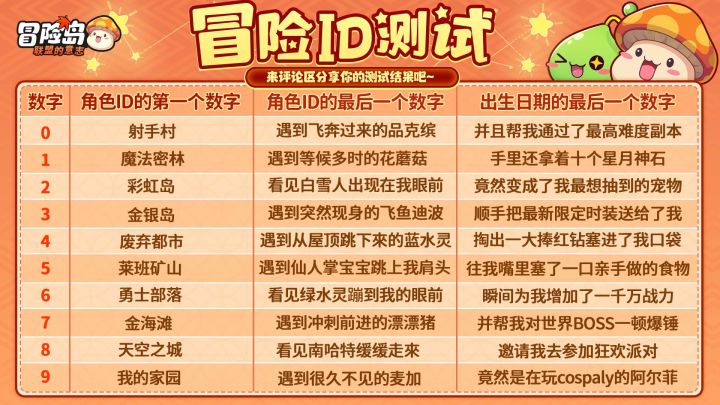 冒险家们都来看看自己的冒险ID占卜结果是什么吧~~#冒险岛联盟的意志 #冒险岛 #联盟的意志