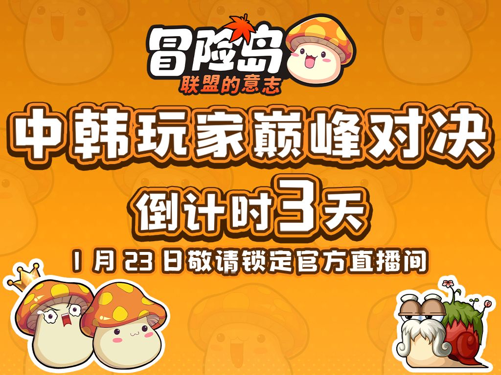1月23日中韩玩家巅峰对决赛,倒计时3天开启! 国服代表玩家Chesnougat 对战 韩服代表玩家 Pangeyo 谁将夺得胜利的旗帜? 1月23日关注锁定《冒险岛:联盟的意志》官方抖音直播间为你揭晓! 各位冒险家们快来评论区应援你支持的大神玩家~! #冒险岛联盟的意志 #冒险岛 #联盟的意志 #捅c #大神玩家巅峰对决#游戏安利#游戏推荐#游戏讨论#游戏福利#游戏资讯