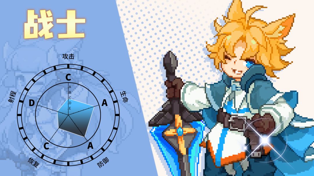 枫之岛上有这样一群冒险家,他们喜好身着重甲,身负巨剑。在战斗中一往无前,以力降会。他们力拔山均,舞动沉重的大剑能够在每一次打击中都给敌人造成巨额创口。他们不怒自威,自身周边总是环绕着护体之气,减少兵器打击力度的同时也可以将来犯的远程攻击尽数挡下。 “他如一头猛牛冲入敌阵,在掀翻一众敌人后还能安然无恙的归来”某战场长官日志中记载。 职业特性: 待机动作: 奔跑动作: 攻击动作: 转职: 战